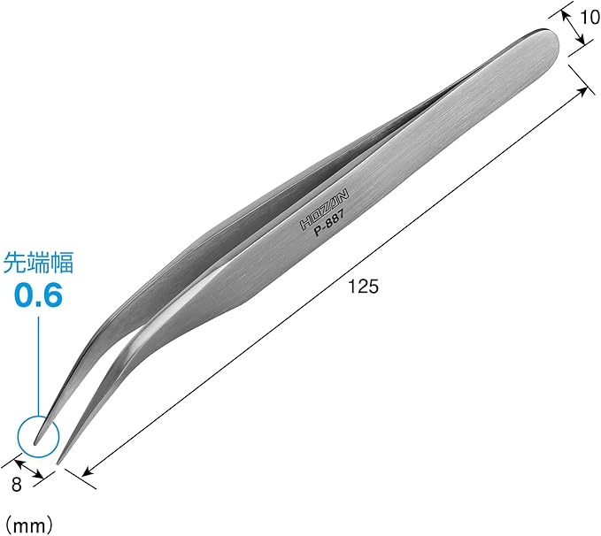 ホーザン(HOZAN) 先曲がりピンセット カーブタイプ 材質ステンレス 全長130mm 重量26g 先端幅0.6mm P-887