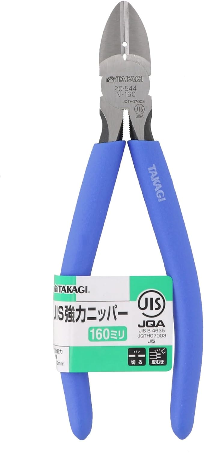 高儀(Takagi) 強力ニッパー ニッパー グリップ付 カッター ギター HOME MADE JIS企画 被膜剥き 工具 電工 ワイヤー 針金 銅線 160mm 切断能力鉄線約φ1.2mm 4907052205444