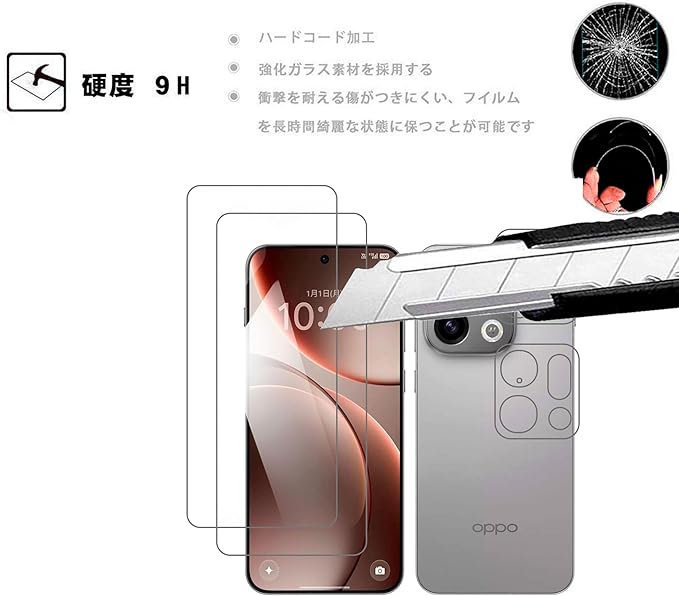 【対応機種】:For OPPO Find X9 用のフィルム 強化ガラス 液晶保護フィルム