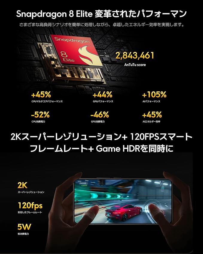 ✅フラッグシップSnapdragon 8 Elite:最新のフラッグシップチップセットQualcomm Snapdragon 8 Eliteを搭載。前世代に較べてCPU/GPU及びAI処理性能が大幅に向上しています。Xiaomi HyperAIを搭載し、日常生活や仕事に多彩なAIを活用することが可能です。