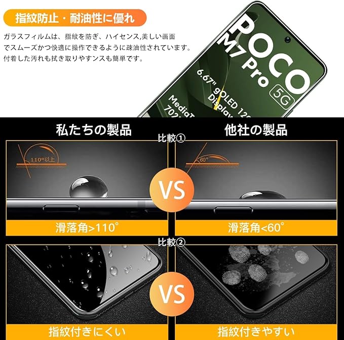 対応 Poco M7 Pro 5G フィルム 日本製素材の強化ガラスを使用した、業界最高レベルの9H硬度に達し。シリコンコーティングを内蔵して衝撃を緩和します、画面へのダメージを最小限に抑えます。本体をしっかりと保護します。