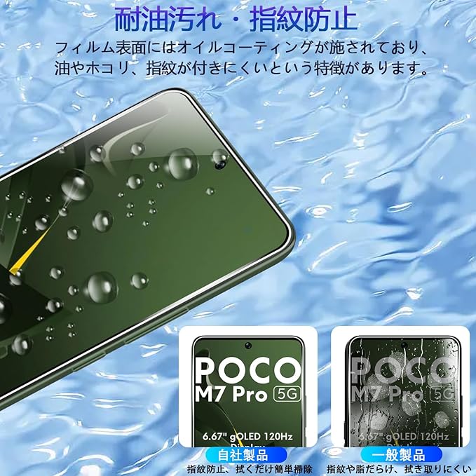 【日本製素材旭硝子製・耐衝撃性、飛散防止でさらに安心!】 対応 シャオミ POCO M7 Pro 保護フィルム 日本製旭硝子素材、9H硬度。ポケットの中の鍵やコインなど、様々なものからスマートフォンを保護します。 またハードコーティング技術により、強度を普通より3倍以上アップしており、により外部からの衝撃をフィルムが吸収し、画面へのダメージを最低限まで抑えました。防爆、耐スクラッチ性、落下防止。特殊な飛散防止設計により、万一割れてしまった際にも飛散することなく、高い安全性を実現します。長く安心して使えます。