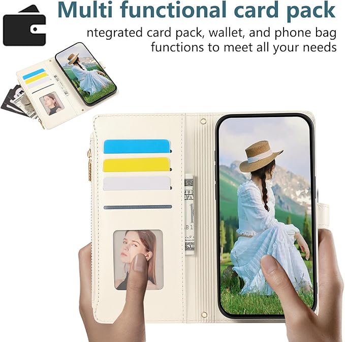 OPPO Find X9 ケース 手帳型 財布型 カバー オッポFind X9 ケース 手帳型 おしゃれ ファスナー型 小銭入れ カード収納 携帯カバー ソフトバンク au 対応 オッポX9 スマホケース 高級PUレザー 刺繍 肌触り良い OPPOに適用 findX9 手帳型ケース オッポ ストラップ付き スタンド機能 全面保護(ホワイト)