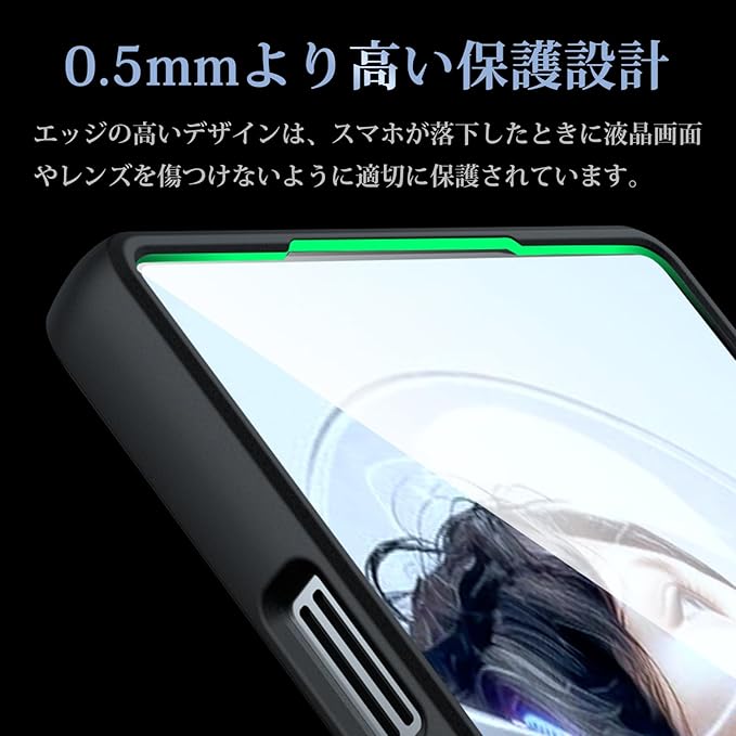 【レンズとスクリーン保護】ケースの厚さは本体より若干高く、redmagic 11 proが机などの平面の物の上に置いても傷がつかない。スマホが落下した際に液晶画面やレンズに傷が付かないようにする。