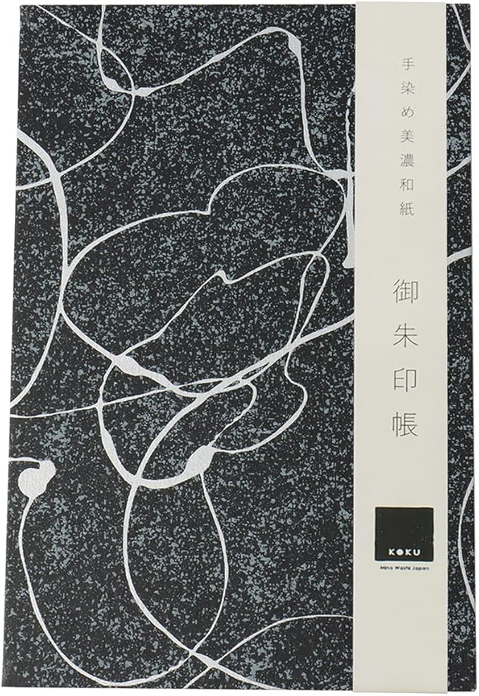 美濃和紙 御朱印帳 黒koku ラインシルバー 集印帳 蛇腹式 大判 友禅染紙 和柄 御城印帳 奉書紙 かわいい おしゃれ 12 18cm 46ページ