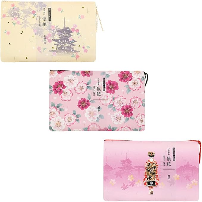 カミイソ産商 日本製 kimono美 ケース付懐紙 3点セット(五重の塔・八重桜・舞妓)