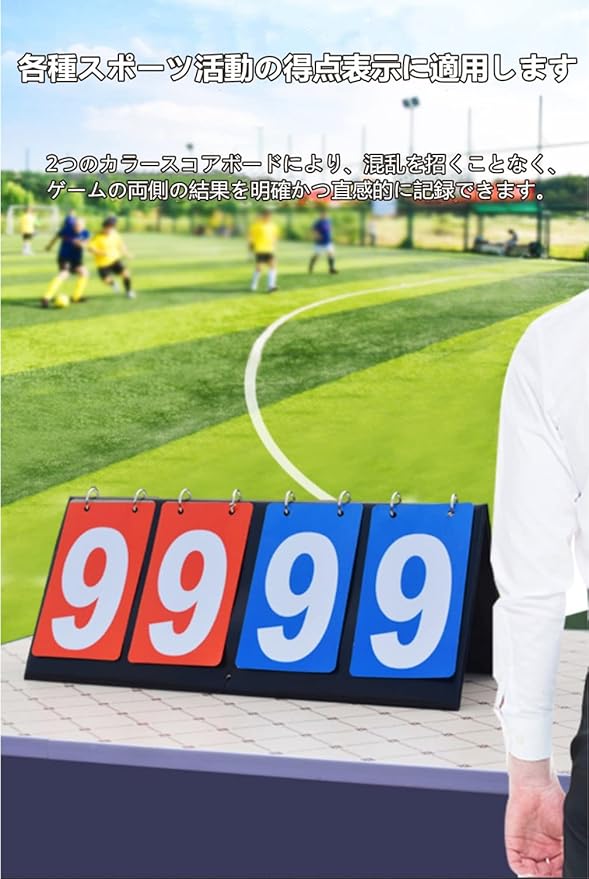 【様々なシーンで使えます】フリップスコアボードは、屋内外のスポーツゲームで柔軟に使用でき、キャンパススポーツやスキル競技に最適です。卓球、サッカー、バドミントン、バスケットバール、バレーボール、または他の競技なの全てのスポーツに適用します。ミニスコアボードは、子供が庭で遊ぶ時とか狭い空間での使用にも適切です。