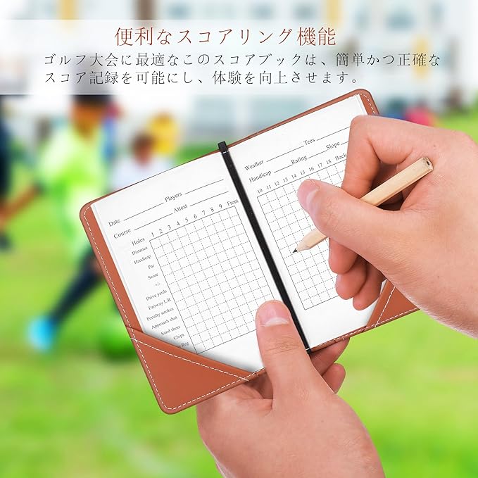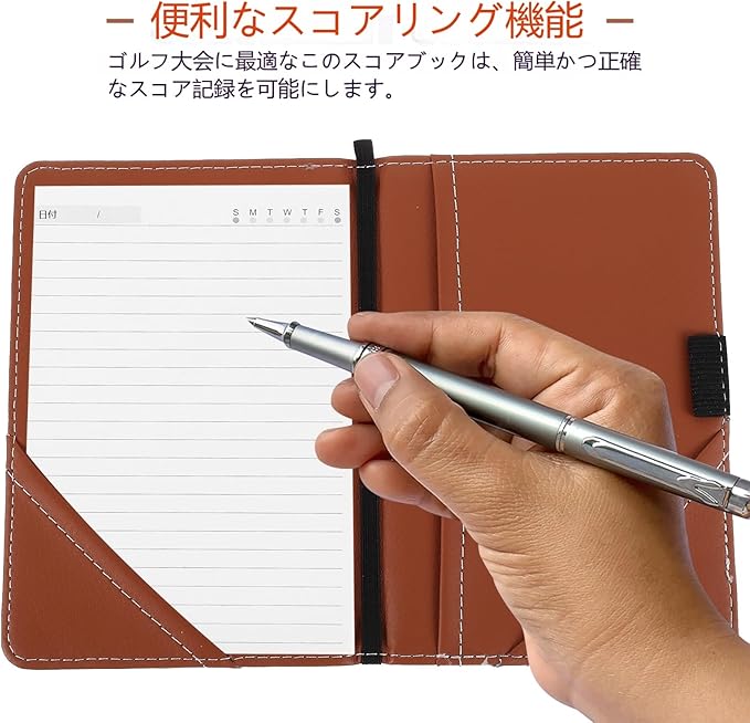 【両開きデザイン】このゴルフスコアカードホルダーは、両開きデザインで使いやすさです。スコアカードやメモを簡単に出し入れでき、プレイ中のストレスを軽減します。