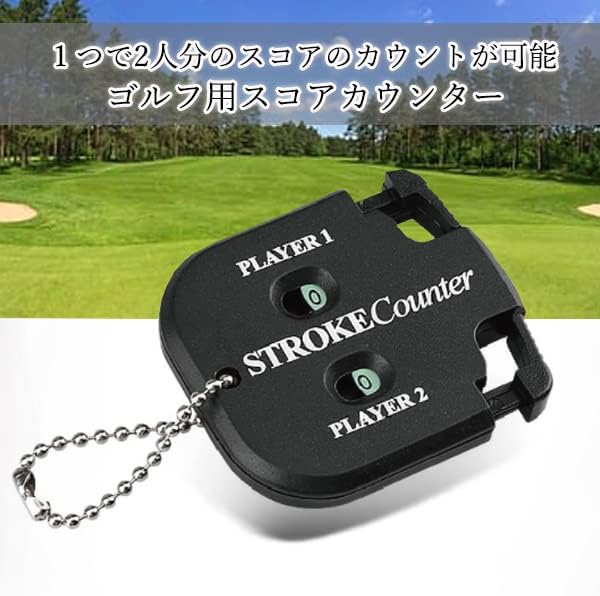 ゴルフ スコアカウンター ブラック 2プレイヤー ラウンド アクセサリー カウンター スコアキーパー キーホルダー コンパクト