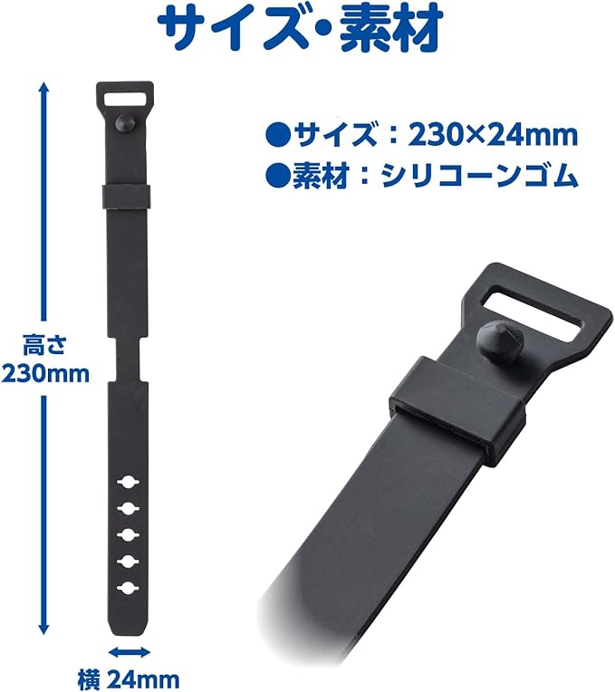 やわらかいシリコン素材を採用しており、5段階のサイズ調整が可能です。