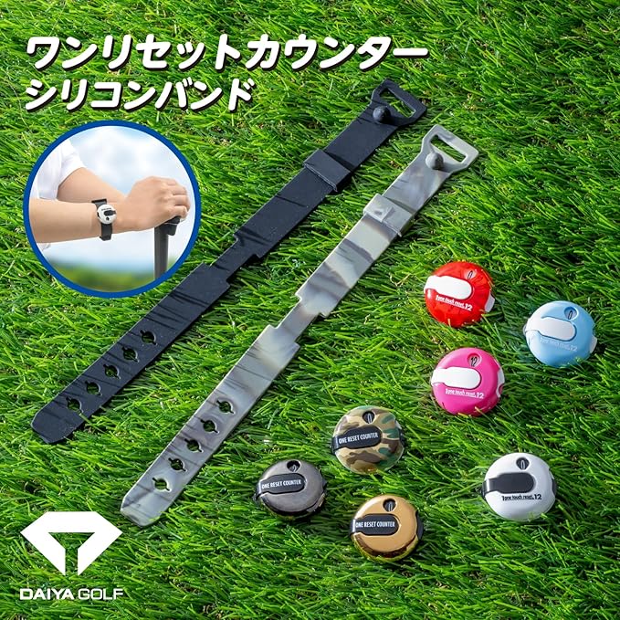 ダイヤゴルフの「ワンリセットカウンター」を腕に取り付けられる専用のシリコンバンド『ワンリセットカウンターシリコンバンド』が登場。失くしやすいカウンターを腕に取り付けることで紛失防止や使いやすさの向上につながります。見た目もスマートなのでファッションの邪魔にもなりにくいデザインです。