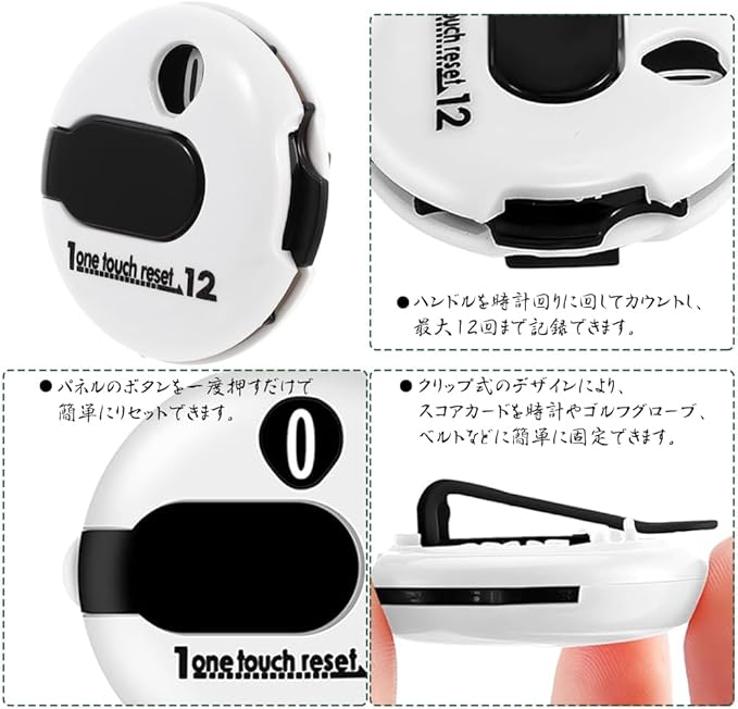 ゴルフスコアカウンター 白/黒 ミニゴルフショットストロークアタッチメントカウンター 簡単操作 カウンター ワンタッチで0打に戻る クリッカークリップ アウトドアスポーツ/ゴルフ/ボウリングスコアカウントの最大12ショットスコア