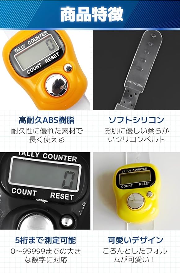 【商品特徴】①高耐久ABS樹脂:耐久性に優れた素材で長く使える/②ソフトシリコン:お肌に優しい柔らかいシリコンベルト/③5桁まで測定可能:0〜99999までの大きな数字に対応/④可愛いデザイン:ころんとしたフォルムが可愛い!