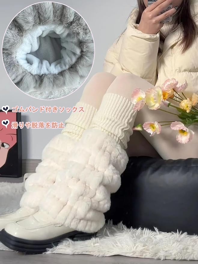 [Viktrui] レッグウォーマー モコモコ足首ウォーマー レッグウォーマー ふわふわ 暖かい 防寒 靴下 ロング レディース フェイクファー 長靴 カフスカバー 女性 女の子 ルーズソックス 冷え対策 可愛い(30cm)