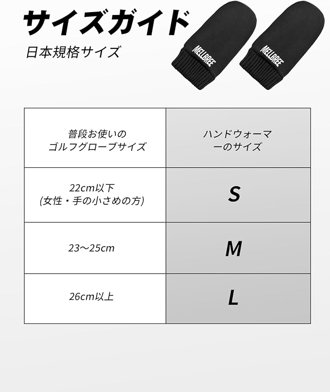 【ぴったが見つかる!グローブの上から装着OKな3サイズ展開】 お手持ちのゴルフグローブの上からサッと装着できる便利な穴あきミットデザイン。普段お使いのグローブサイズに合わせて、最適なフィット感をお選びいただけます。(サイズ目安) ● Sサイズ:グローブサイズ 22cm以下(女性・手の小さめの方) ● Mサイズ:グローブサイズ 23~25cm ● Lサイズ:グローブサイズ 26cm以上