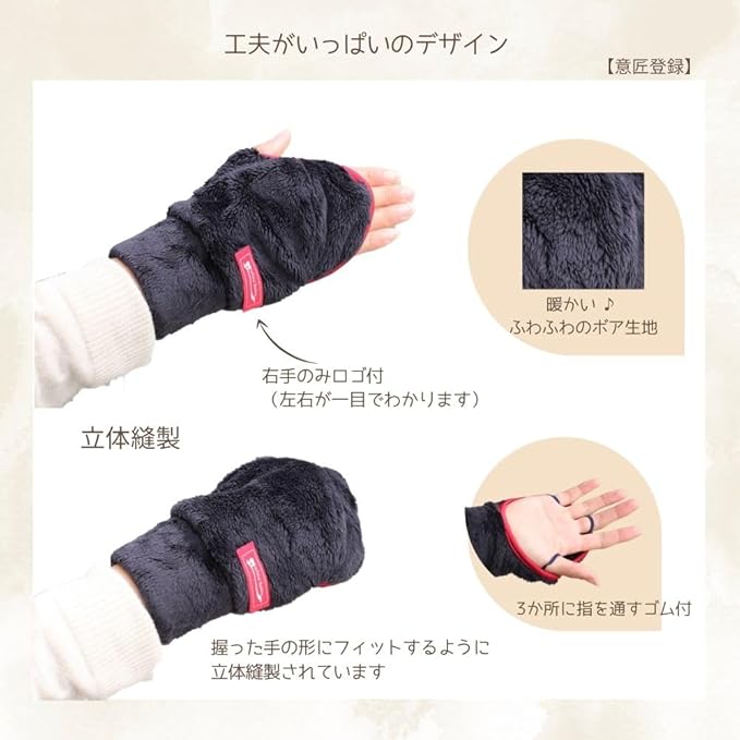 [ホワイトビューティー] ふわふわ ハンドウォーマー 手袋 レディース 指なし スマホ対応 手の平オープン型 防寒 テニス ゴルフ 日本製