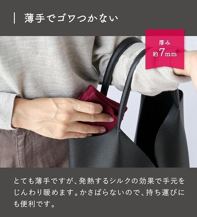 絹屋の"極暖シルク"シリーズでは、シルクに特殊な加工を施し、アイテムごとに最適な編み方で仕立てることで吸湿、発熱性を高めた、心地よい暖かさを実現しました。
