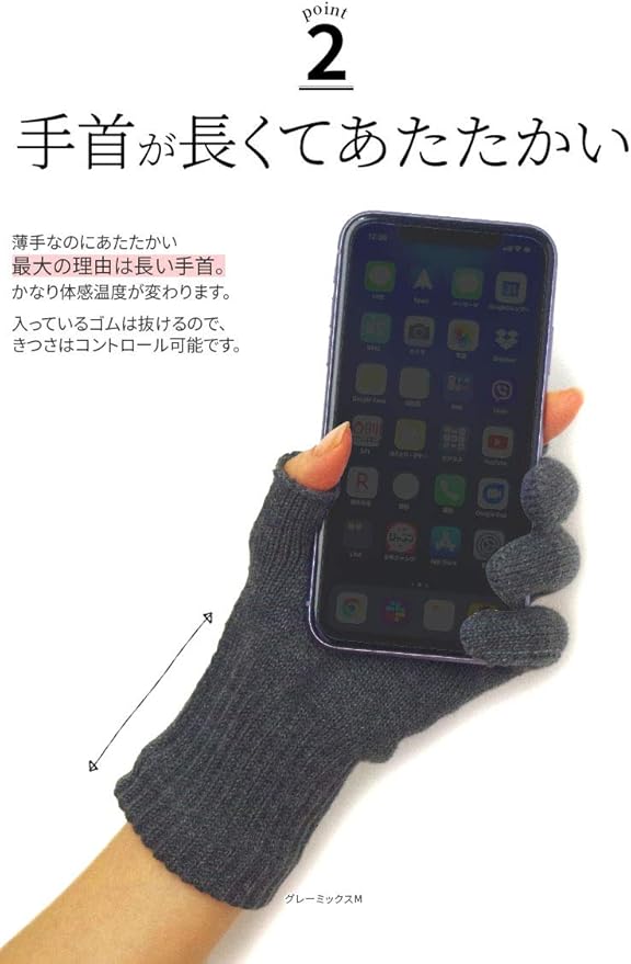 [841(ヤヨイ)] ハンドウォーマー 2フィンガー スマホ手袋 指なし 2本指 綿 日本製