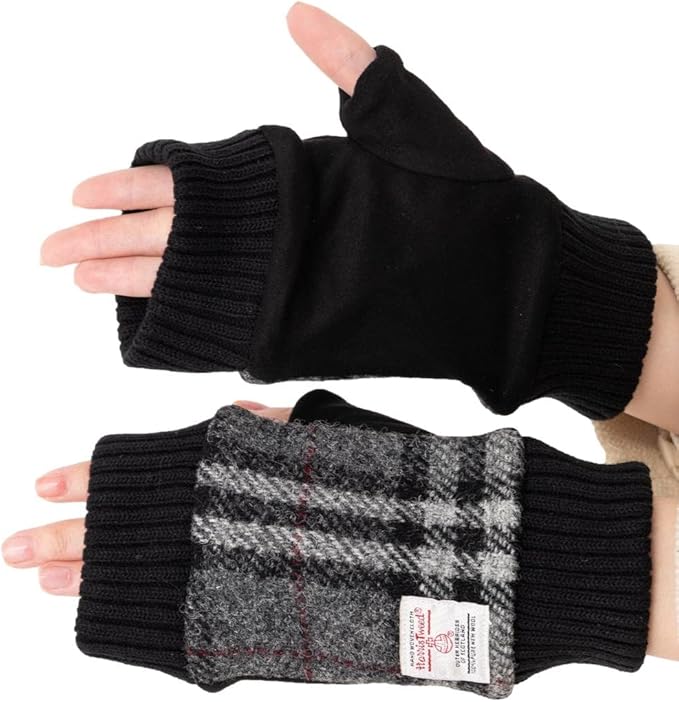 [スリーピング シープ] Harris Tweed ハリス ツイード ミテーヌ 指なし手袋 裏ボア ヘリンボーン ウール レディース アームカバー ケース付