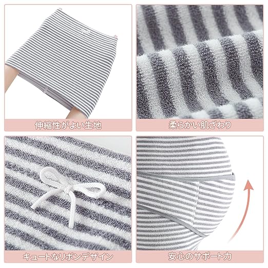 腹帯 妊婦帯 セット マタニティベルト はらまきタイプ 腹巻 産前 お腹保護 体にフィット おなかを支え 天然コットン パイル素材 マタニティ 縞模様 妊娠祝い ギフト グレー Mサイズ