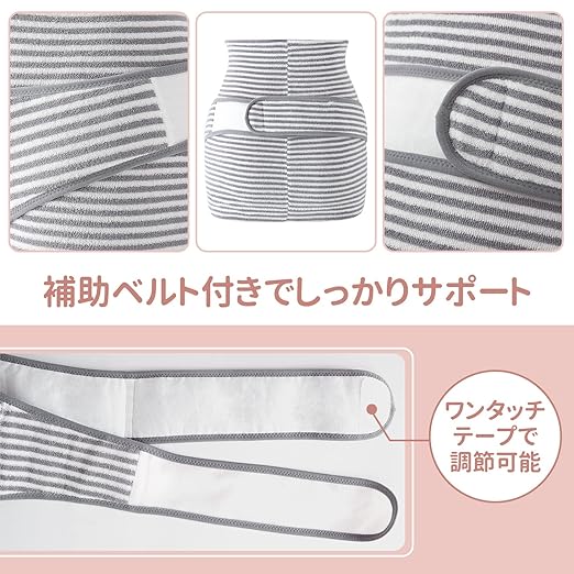 【ワンタッチテープで着脱簡単】補助ベルトは後ろで調節しやすいマジックテープ。肌あたりの良い綿100%柔らか素材なので、肌が敏感になりがちな妊娠中におススメのマタニティグッズです!