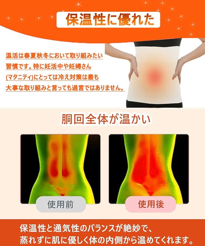 【365日温活を感じる】筒状に編まれているのでい縫い目がありません。嫌なチクチク感がなく心地よい風合いを楽しめます。薄いからシャツの下でも着膨れしません。冬の寒さだけでなく、夏のエアコン対策、冷房対策、生理期、ヨガ、就寝、仕事中等年齢を問わず一年中使えます。お腹や腰回りが気になる方の強い味方です。