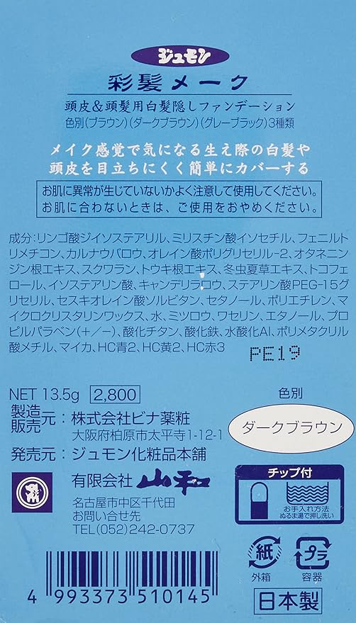 白髪隠し 薄毛隠し 頭皮ファンデーション 頭皮 カバー ジュモン 彩髪メーク(ダークブラウン)