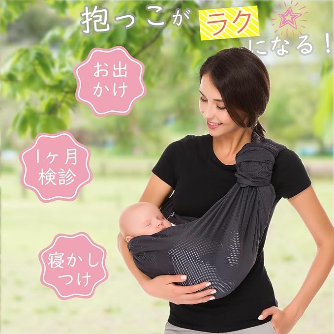 CUBY ベビースリング 抱っこ紐 新生児 メッシュ 通気性 超軽量 対面・横抱き・腰抱き対応 温泉利用可能 水遊ぎ 旅行 猛暑対策(メッシュグレー)
