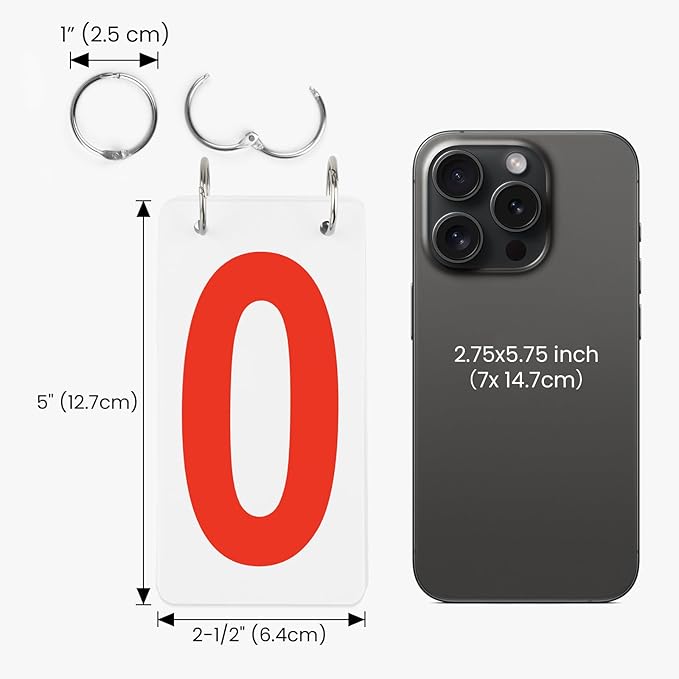 【扱いやすいサイズ】:数字カードのサイズは約6.4 12.7cm。直径約2.5cmのリング付きで、取り付け・取り外しも簡単です。