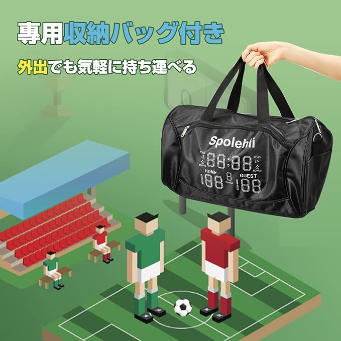 電池式LEDスコアボード 専用収納バッグ/電池/リモコン付き スポーツタイマー 得点板 11桁 1.2kg超軽量 操作簡単 スコア/回数/時間表示 マルチスポーツ バスケットボール/テニス/バレーボール/ボクシング/卓球用 日本語説明書付き