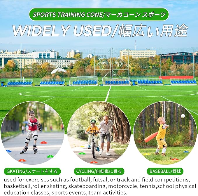 ✅サッカー マーカー用途が広い:サッカー、野球、テニス、陸上、ローラースケート、フットサルなどの各種スポーツに適用する。自転車やバイク、ドローンでの練習にも使えます。目標、距離、エッジ、境界マーカー、障害物、訓練速度、正確性、敏捷性を設定するために使用されます。学校、運動会、団体競技や部活の理想的な選択です。