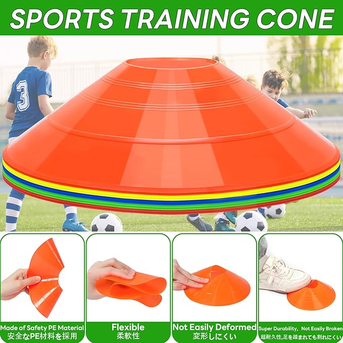 ✅サッカー コーン携帯に便利:収納袋が付いており、たい積で保管でき、スペースを占有しない。軽量ですが、風に吹き飛ばされにくく、子供たちも容易に持ち運ぶことができます。