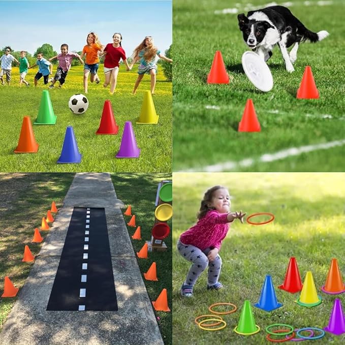 【5色 各2個=10本セット】視認性の高い5色(赤・青・緑・黄・オレンジ)を各2個ずつセットに。色分けしての練習やチーム分けにも便利で、多用途に活躍します。