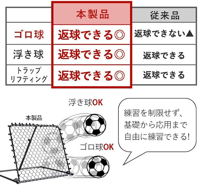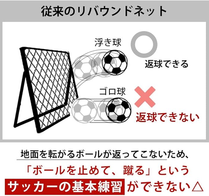 キックやトラップ、パス、リフティングの反復練習に最適なリバウンダーです。