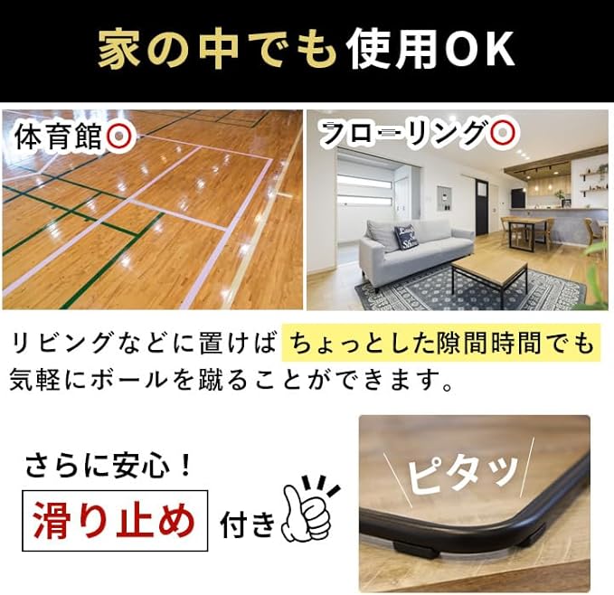 グラウンド、公園、庭などの屋外だけではなく家の中でも練習が可能です。