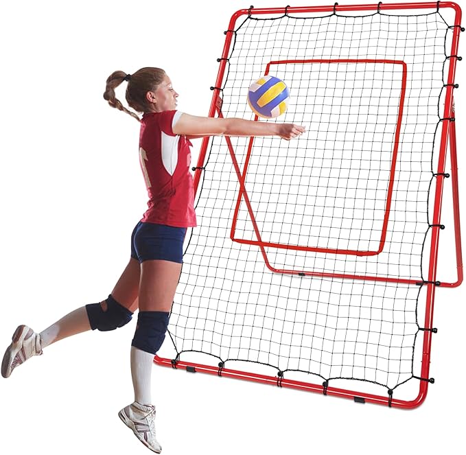 AKOZLIN リバウンドネット 120 183cm 5 段階角度調整可能 壁打ちネット 練習用ターゲット&収納バッグ付き 練習グッズ 室内練習 自宅 ソフトボール・野球・ホッケー ・バレーボール・バドミントン適用 レッド