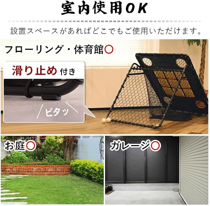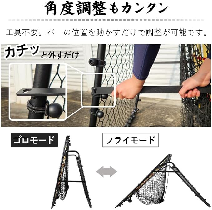 【1台2役!個人練習の決定版】⚾ピッチャー野球少年のお悩み「狙ったところに投げたい…」「家で練習したいけど、1人ではできない…」そんなお困りごとを解決!1台で投球・捕球、どちらも練習可能。従来品は、ピッチング・キャッチング、いずれか片方しか練習できないネットが一般的でした。当製品は、表面はストラックアウト、裏面はリバウンダーとして活用でき、ピッチングも捕球も両方練習が可能です。角度調整2段階。角度を変えるだけで、ゴロ・フライの切り替えが可能。角度調整も簡単です。