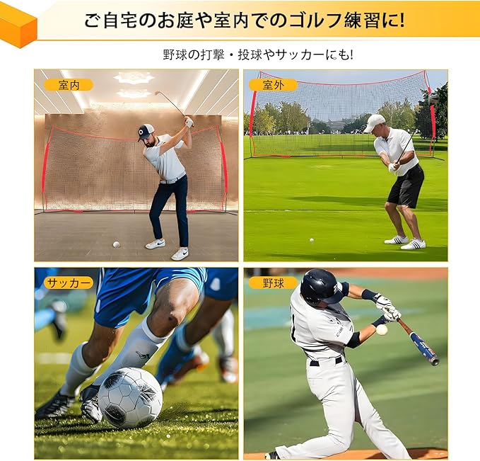【多くの場面に適応する】ラクロス、野球、ソフトボール、バスケットボール、サッカー、フィールドホッケーのトレーニングなど、このバックストップネットは、屋外での使用や大きな施設での屋内での使用に最適です。