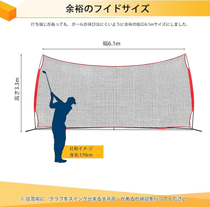 【トレーニングスペース】このバックストップのサイズは20フィート x 10フィートで、大人も子供もイライラすることなく練習するのに十分なスペースがあります。