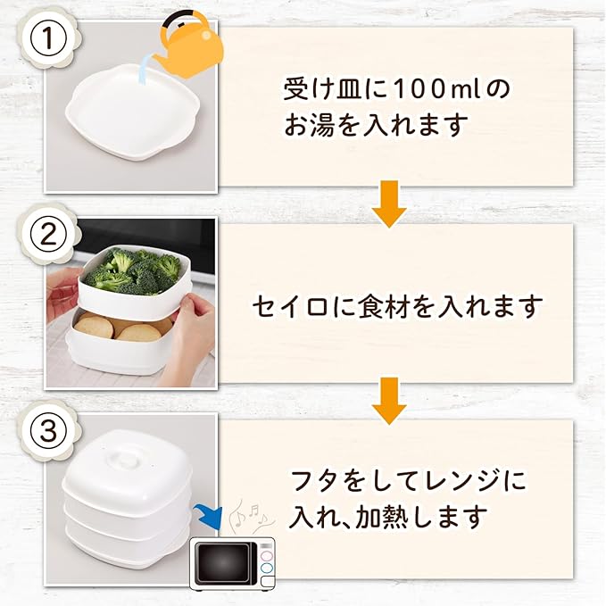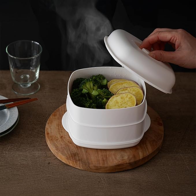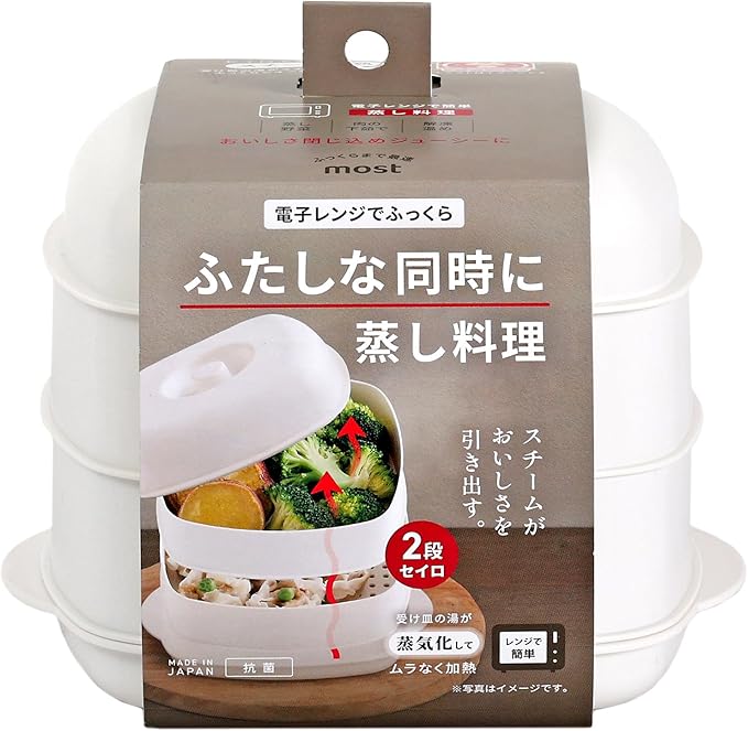 【2品同時に調理ができる2段セイロ】:時短で簡単。電子レンジで1度に2品同時に調理できる、日本製の2段セイロ。