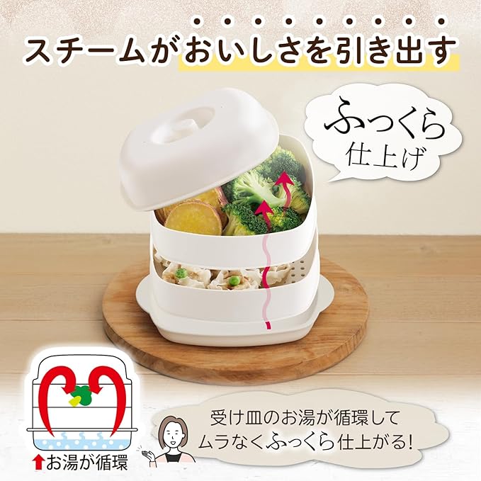 アストロ 蒸し器 2段 ホワイト せいろ 【電子レンジ調理器 日本製 2品同時に調理】 抗菌 食洗機対応 スチーム加熱でふっくら仕上がる スチーマー 蒸し料理 温野菜 蒸し鶏 下ごしらえ 冷凍ご飯加熱 ヘルシー料理 ダイエット料理 510-57