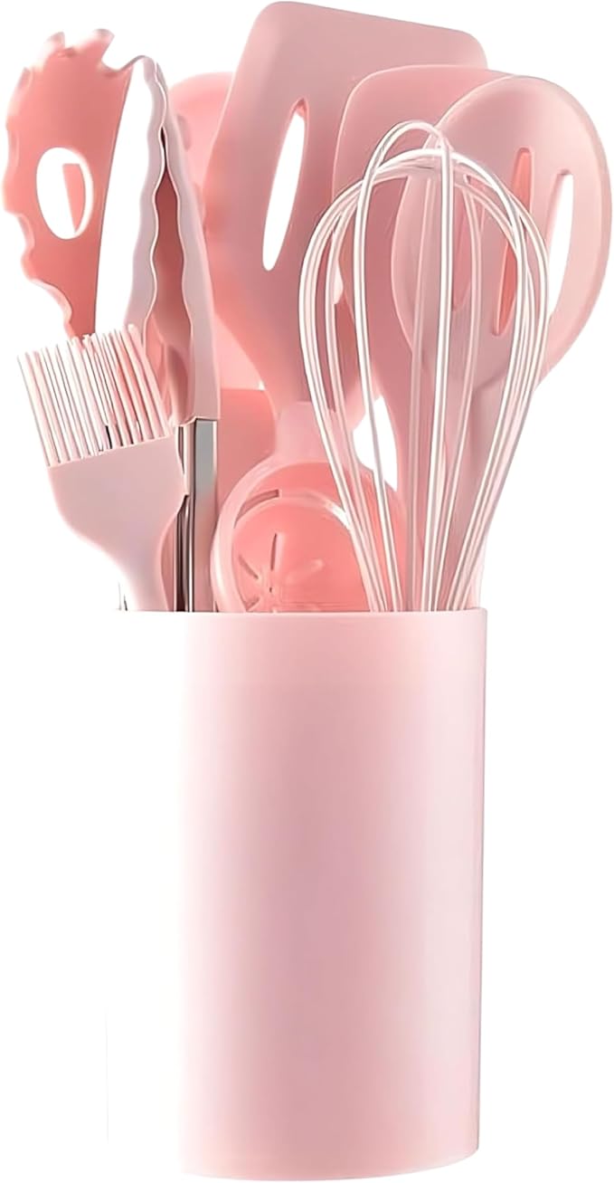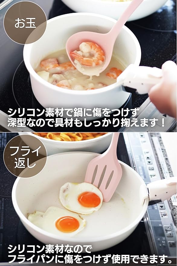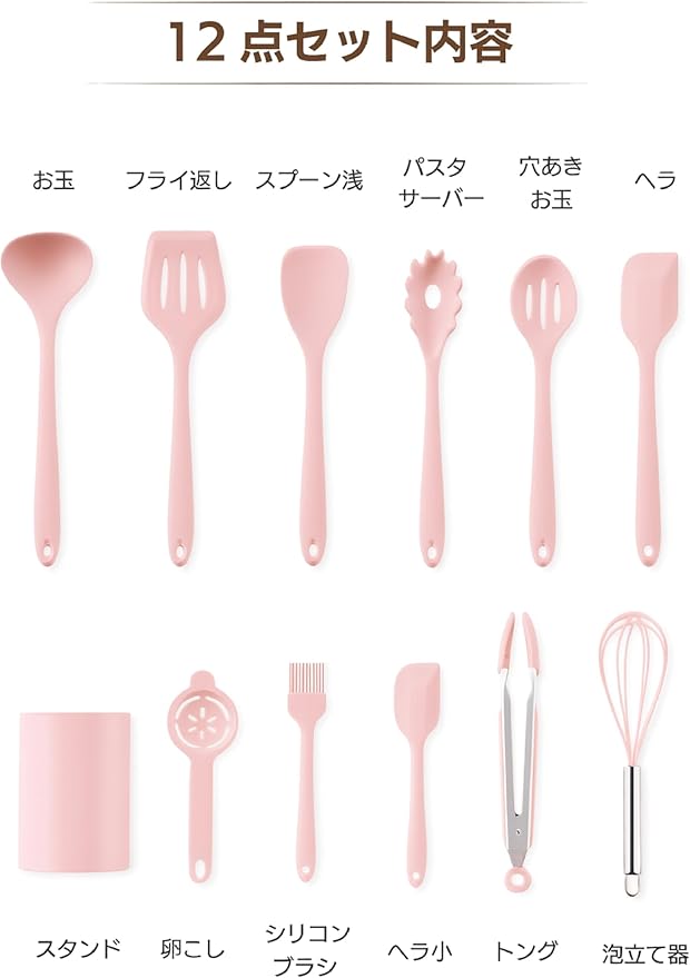 Pop Frog キッチンツールセット ピンク おたま お玉 セット シリコン キッチンセット キッチンツール 調理器具 一人暮らし 収納 戸棚 子供 製菓器具 キッチン フライ返し スプーン シリコンヘラ 耐熱シリコン おしゃれ 【専門家が監修】 (ピンク)