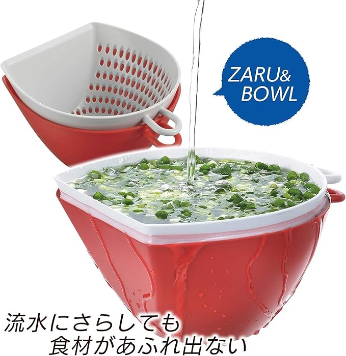 曙産業 ザル ボウル セット レッド 日本製 まな板の上で切った食材をサッとすくってこぼさず移動 流水にさらしても食材があふれない 目盛付き 引っ掛けフック付き 電子レンジ対応 チリトリ ザルボウル MZ-3519