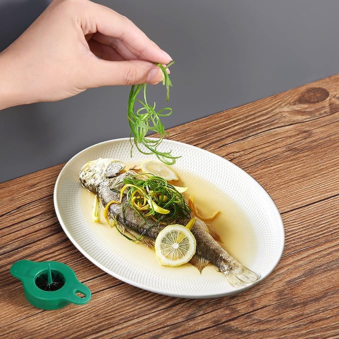 [均一カット技術] 白髪ねぎカッターは12本のとがった刃で、軽く押すだけでネギを素早く均等にスライス。家庭の日常料理や飲食店の業務シーンでも使いやすく、調理時間を短縮。