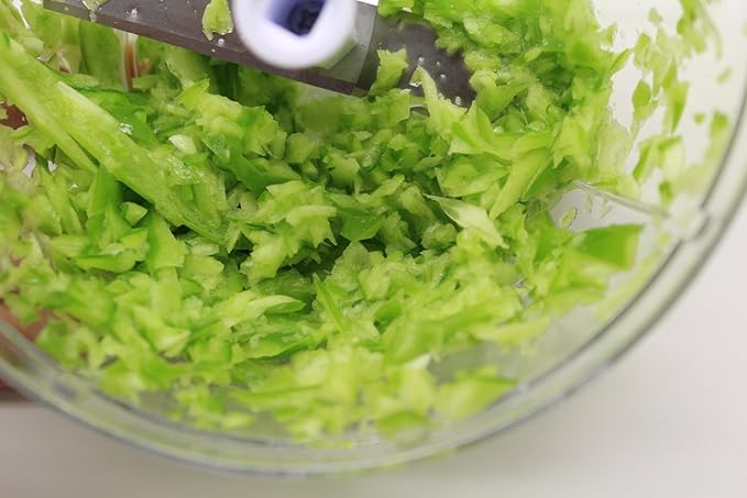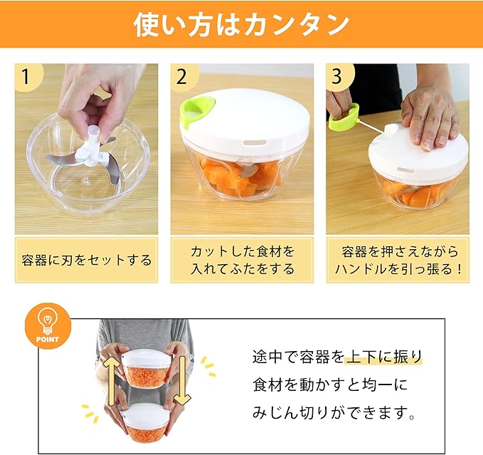 カットした野菜を入れてぶんぶん引っ張るだけでみじん切りが完成します