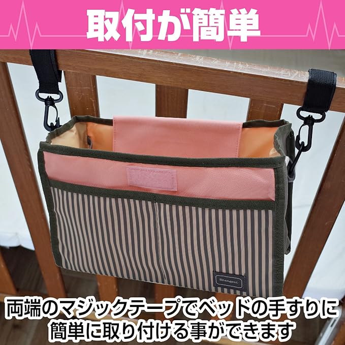 ZERONOWA 入院時 便利グッズ ベッドサイド 吊り下げポケット 小物 整理 収納 (ピンク)