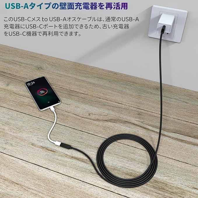 【USB-Cメス to USB-Aオス アダプターケーブル】USB-CデバイスやUSB-Cケーブルを標準USB-Aポートに接続可能。USB-Aポートしかない環境でも、USB-Cアクセサリーを買い替える必要はありません。充電やデータ同期に最適です。