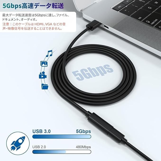 【高速充電 & 安定したデータ転送】USB 3.0に対応し、最大5Gbpsの高速データ転送が可能。さらに最大2.4Aの安定した充電に対応します(※接続デバイスおよび充電器の性能に依存)。