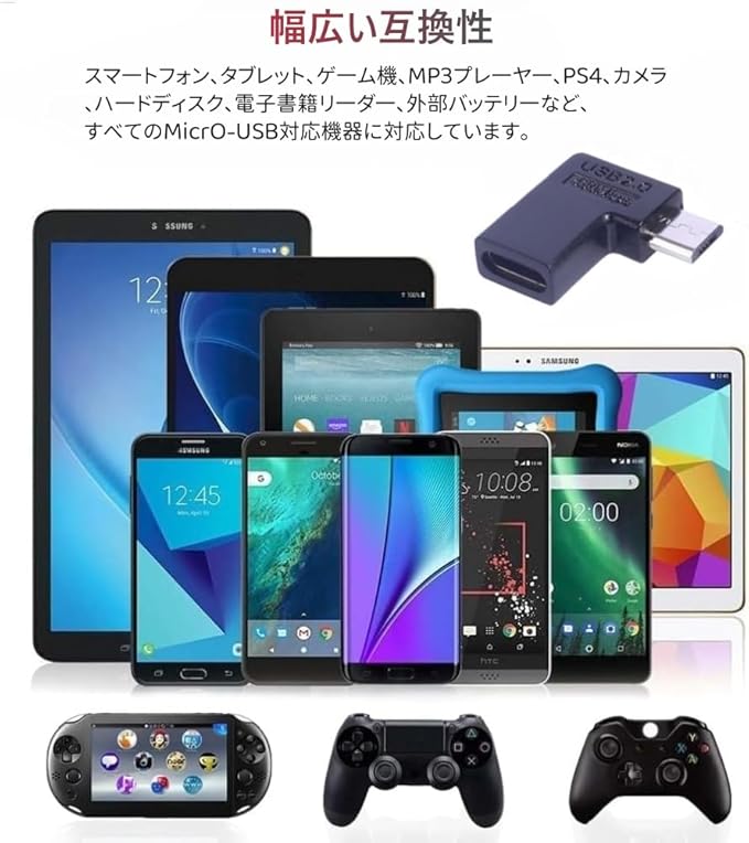 【幅広い互換性】USB-C to Micro-USB L字型アダプターは、スマートフォン、デジタルカメラ、充電式バッテリー、スピーカー、Bluetoothイヤホン、MP3/MP4、ドライブレコーダー、ビデオカメラ、ゲーム機など、Micro USB端子の機器に対応。