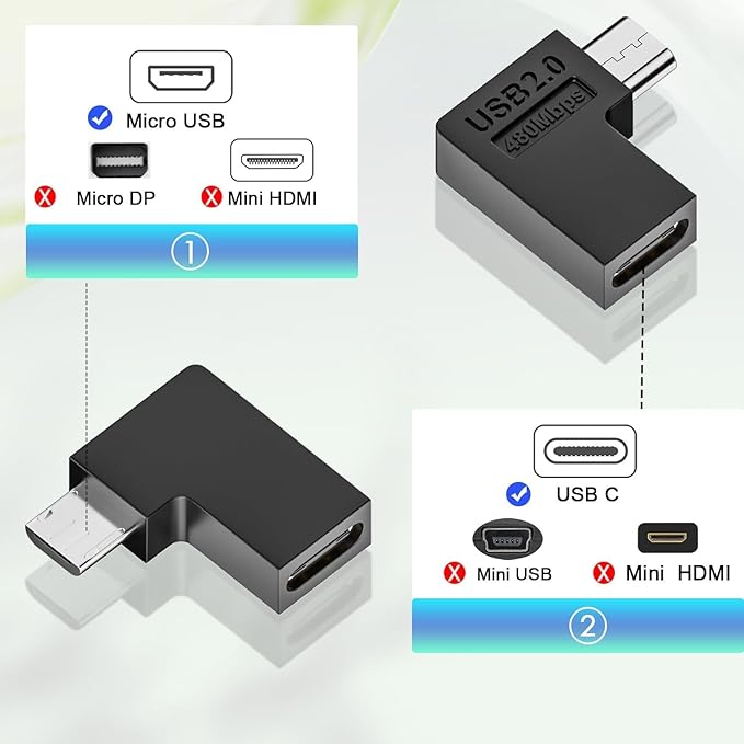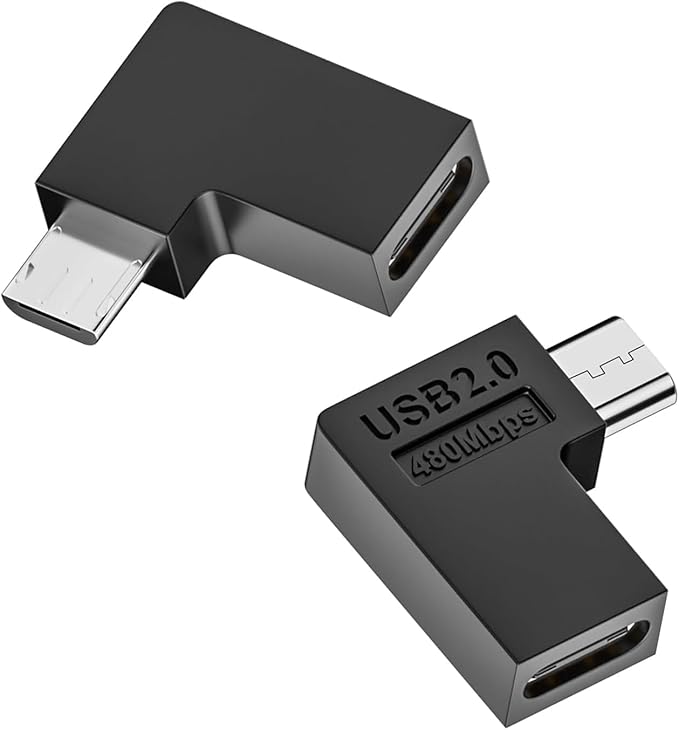 【Type C から Micro へ変換】USB-Cメス → Micro-USBオス 90 角度アダプター。Micro USB ポートを USB-C ポートに変換し、USB-C ケーブルで充電・データ転送が可能になります。